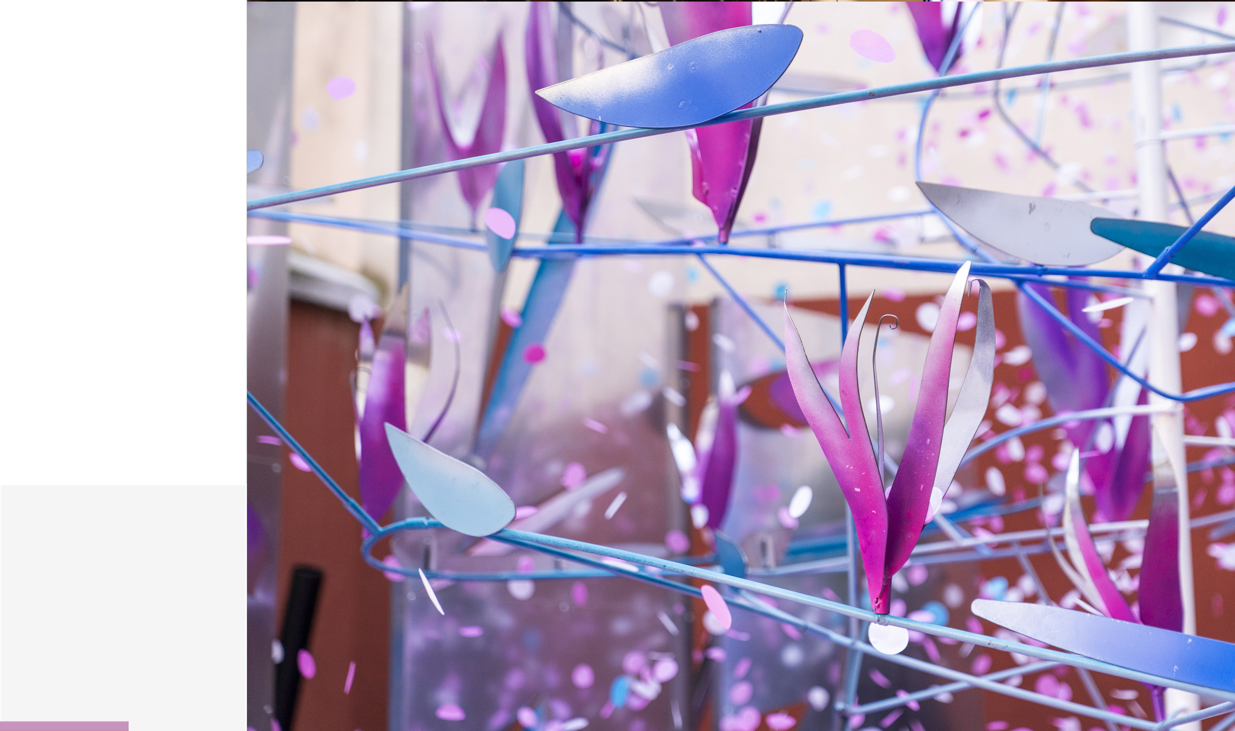 È composta da una grande scultura in ferro e acciaio, l’astrazione di un fiore e il suo essere in divenire.